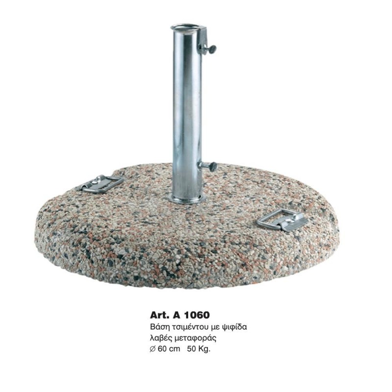Βάση ομπρέλας από τσιμέντο ψηφίδα 50 κιλων βάρος για με χερούλια για ευκολότερη μετακηνιση ιστό Φ50mm-60cm διάμετρος κατάλληλη και για επαγγελματίες.