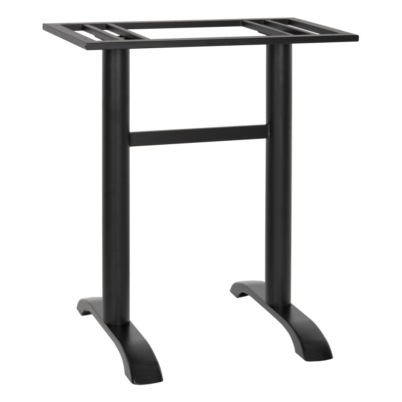 Η ΗΜ479.01 είναι βάση μεσαίου ύψους για τραπέζι bar σε ΜΑΥΡΟ χρώμα. Αυτή η βάση είναι μεταλλική με 2 κολώνες που στηρίζονται σε δύο ελαφρώς αψιδωτά πέλματα. Αυτές οι κολώνες καταλήγουν στην βάση στήριξης της επιφάνειας που είναι ορθογώνια. Επίσης, στο κάτω μέρος της διαθέτει ρυθμιστές ύψους (ρεγουλατόρους). Ιδανική πρόταση για συνδυασμό με επιφάνειες σχεδόν κάθε είδους, όπως βερσαλίτες, HPL, MDF, κτλ.