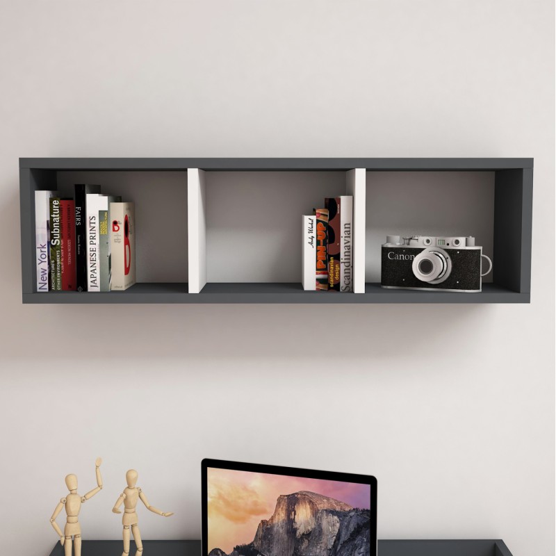Βιβλιοθήκη γραφείου από μελαμίνη σε σταχτί χρώμα με 3 επίπεδα αποθήκευσης 42*30*65εκ.