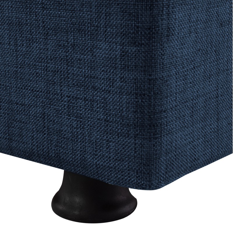 Ξεκινώντας από τα βασικά και τα προφανή, το χρώμα της επένδυσης με το εξαιρετικό και καλοραμμένο ανάγλυφο ύφασμα αυτού του καναπέ, είναι ΜΠΛΕ. Διαθέτει 2 μικρά μακρόστενα μαξιλάρια με το ίδιο ύφασμα που μπορούν να χρησιμοποιηθούν όπως θέλει ο καθένας. Χαρακτηριστικό αυτού του καναπέ είναι ότι δεν διαθέτει μπράτσα με αποτέλεσμα να μην περιορίζει την χρήση του από τους χρήστες του. Επίσης, γίνεται πολύ εύκολα κρεβάτι μέσω ενός εύχρηστου μηχανισμού (κλικ-κλακ) πολλαπλασιάζοντας την χρησιμότητά του. Κάτω από το κάθισμα του καναπέ υπάρχουν 2 αποθηκευτικοί χώροι με ενισχυμένο πάτωμα καθιστώντας τον ένα πραγματικό πολυεργαλείο, ειδικά για φοιτητικά σπίτια αλλά και σπίτια με περιορισμένο γενικά χώρο.