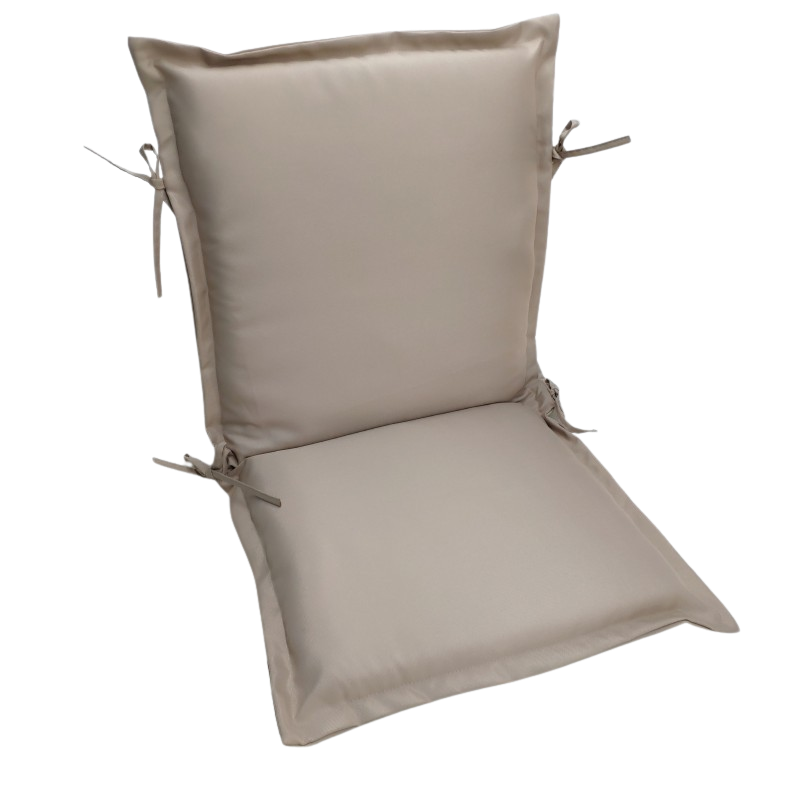 Μαξιλάρι εξωτερικου χώρου για καρέκλα εξωτερικου χώρου με χαμηλή πλάτη με επένδυση από πολυεστερικό ύφασμα πλήρως υδατοαπωθητικο με γέμιση αφρολέξ υψηλής πυκνότητας πάχους 5 εκατοστών και βολάν περιμετρικά σε χρώμα μπεζ της άμμου.Ένα μαξιλάρι κατάλληλο για μεγάλη ποικιλία καρεκλών εξωτερικου χώρου και ιδανικό για κάθε οικιακό και επαγγελματικό εξοπλισμό.