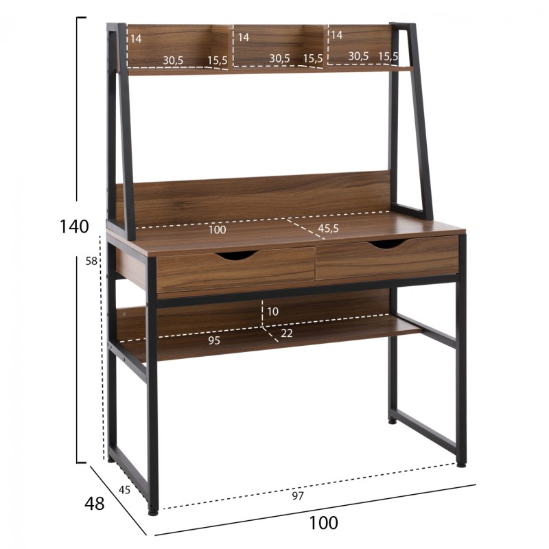 Γραφείο sonoma φυσικό χρώμα CMS-505-SS για φορητό υπολογιστή με συρτάρι και βιβλιοθήκη 90x52x75εκ