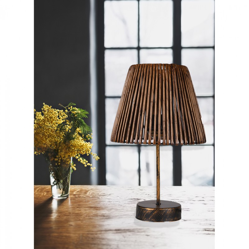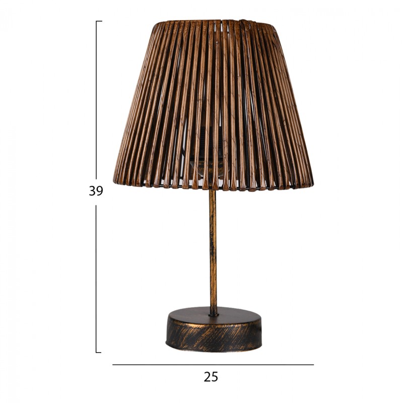 Πορτατίφ λαμπατέρ λάμπα επιτραπέζια μπροντζε μεταλλική Ε27 με χρυσό καπέλο υφασμάτινο με επικάλυψη PVC Φ20x37εκ