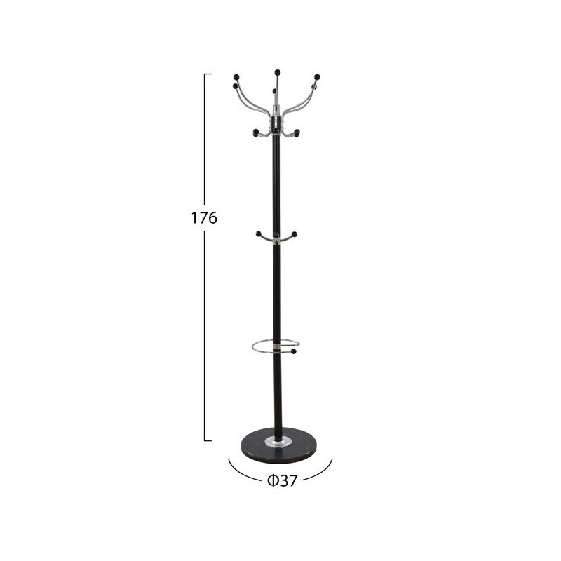Καλόγερος ρούχων HANG1 μεταλλικός λευκός σφυρήλατο μονοκόμματος με ξύλινα τελειώματα ηλεκτροστατική βαφή και θήκη για ομπρέλες