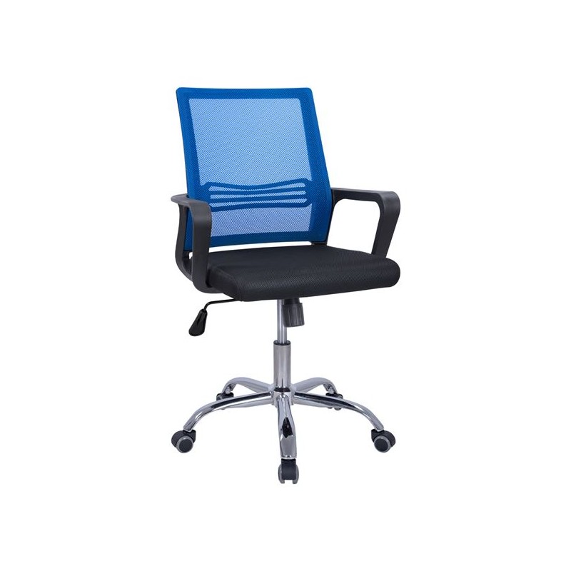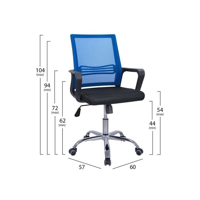 Το κύριο χαρακτηριστικό της καρέκλας είναι το μπλε ύφασμα της πλάτης που είναι mesh, δηλαδή διάτρητο. Αυτό σημαίνει ότι αφήνει την πλάτη να αναπνέει και να μην ιδρώνει προσφέροντας άνεση για πολύωρη χρήση.