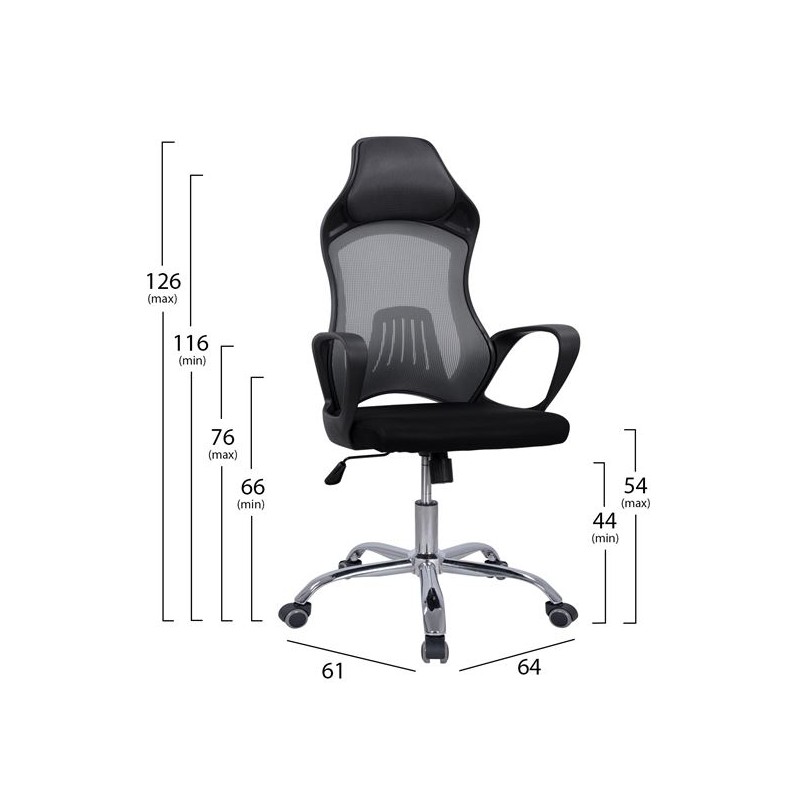 Καρέκλα γραφείου gaming μαύρη με βάση τροχήλατη ανεξάρτητη πλάτη με μαξιλάρι μέσης και διάτρητο ύφασμα 64x60x126εκ