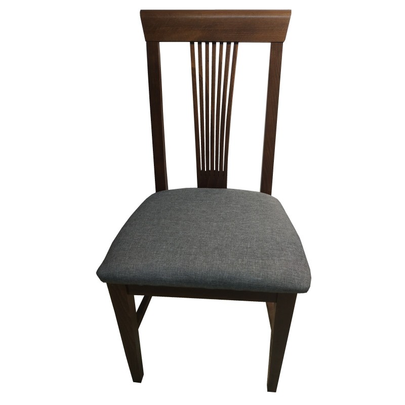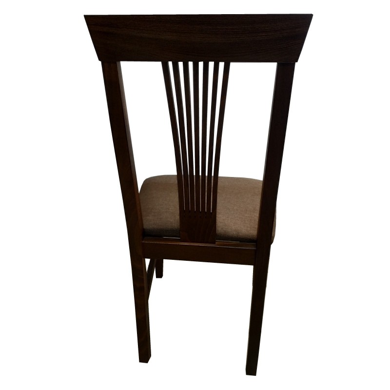 Καρεκλά τραπεζαρίας ξύλινη από ξύλο οξιάς σε καρυδί χρώμα με ύφασμα λαδί- λευκό και τρουκς 48*47*94εκ.