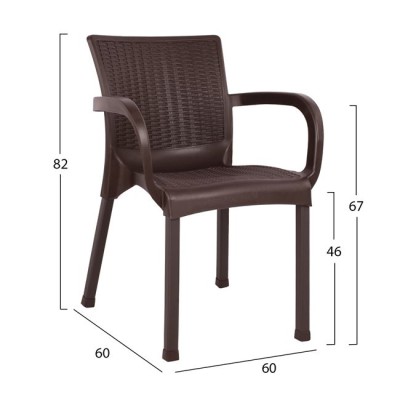 Πολυθρόνα ραταν πολυπροπυλενίου BABELL καφέ SPC-B003 στοιβαζωμενη 56×44×89 εκ.
