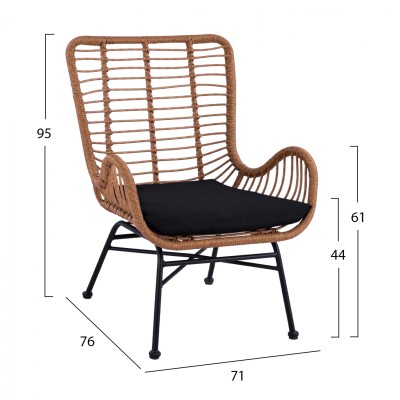 Πολυθρόνα Bamboo ραταν πολυπροπυλενίου καφέ SPC-B018 στοιβαζωμενη επαγγελματική 64x63x82εκ