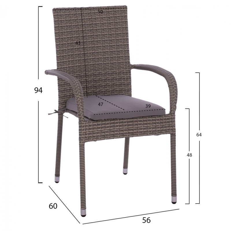 Πολυθρόνα κήπου αλουμινίου/textilene και polywood στο μπράτσο σε ανθρακί χρώμα HYC-0146PL 63x55.5x90εκ