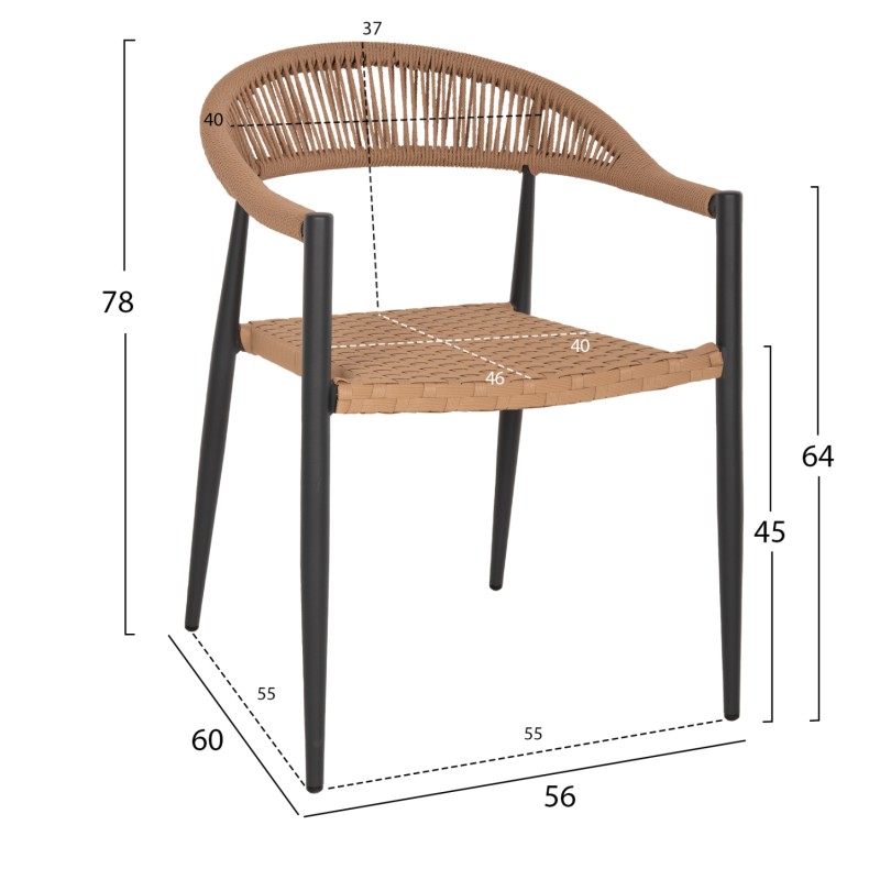 Η πολυθρόνα HM5854.12 είναι επιβλητική! Μοντέρνα, άνετη και σταθερή! Η διχρωμία του ΑΝΘΡΑΚΙ σκελετού με την ΜΠΕΖ επένδυση από RATTAN-wicker στο κάθισμα, την πλάτη και τα μπράτσα είναι μοναδική. Η πλάτη είναι στρογγυλεμένη και αγκαλιάζει το σώμα ενώ το κάθισμα αντί για μαξιλάρι έχει πλέξη από rattan. Η πολυθρόνα αυτή θα αναβαθμίσει αισθητικά τον χώρο που θα την τοποθετήσετε και θα τραβήξει τα βλέμματα χάρη στα υλικά κατασκευής της. Επίσης, το γεγονός ότι είναι στοιβαζόμενη την κάνει ιδιαιτέρως πρακτική αφού μπορείτε να την αποθηκεύσετε στον μικρότερο δυνατό χώρο.