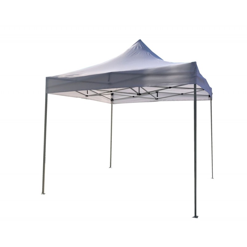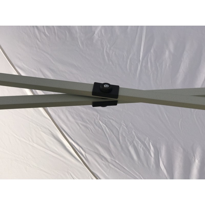 Κιόσκι πτυσσόμενο 3mx3m με λευκό μεταλλικό σκελετό και λευκό αδιάβροχο ύφασμα 210D oxfortd με ασημί επίστρωση εσωτερικά για περισσότερη προστασία για τον ήλιο.