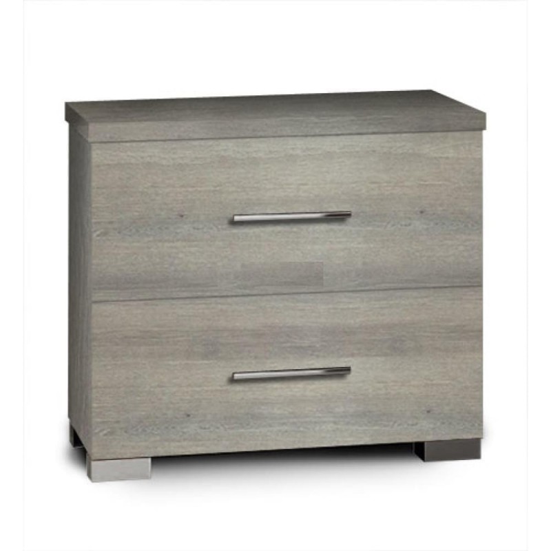 Κομοδίνο κρεβατοκάμαρας σταχτί με τρία συρτάρια με μηχανισμούς ένα ρηχό και δύο βαθιά από μελαμίνη KMD-520-TT-1 40x40x57εκ
