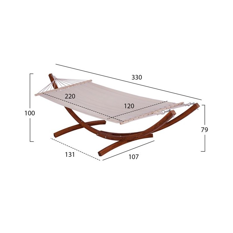 Κούνια αιώρα ξαπλώστρα καφέ με σκίαστρο και βάση μεταλλική 114*2m*2m ύψος