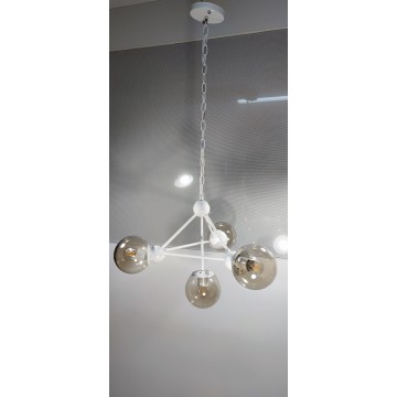 Τετράφωτο κρεμαστό φωτιστικό Ε14 με λευκό μεταλλικό σκελετό και μελί μπάλες διαστάσεων Φ60*Υ40εκ.