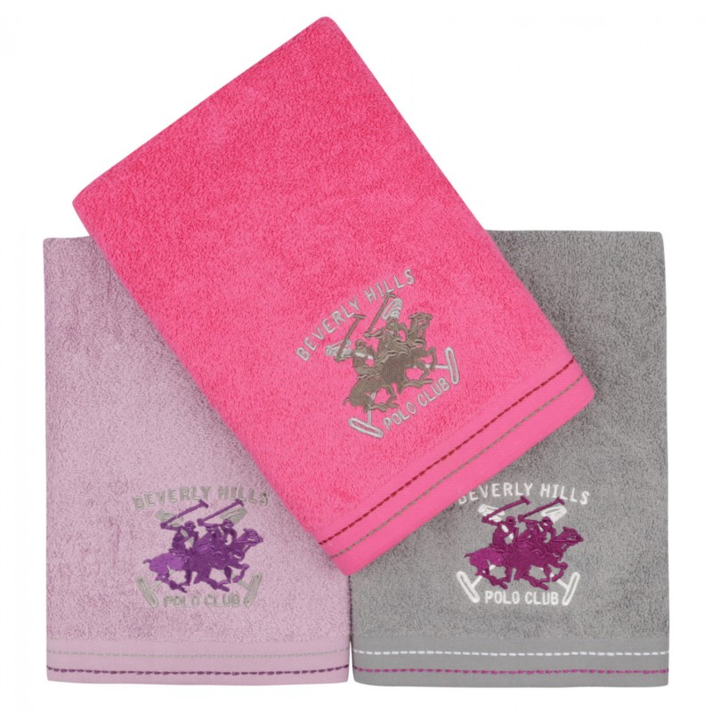 ΠΕΤΣΕΤΕΣ ΠΡΟΣΩΠΟΥ 3ΤΜΧ BEVERLY HILLS POLO CLUB HM12108 ΛΙΛΑ ΦΟΥΞΙΑ ΓΚΡΙ 50x90 εκ. 355BHP2292
