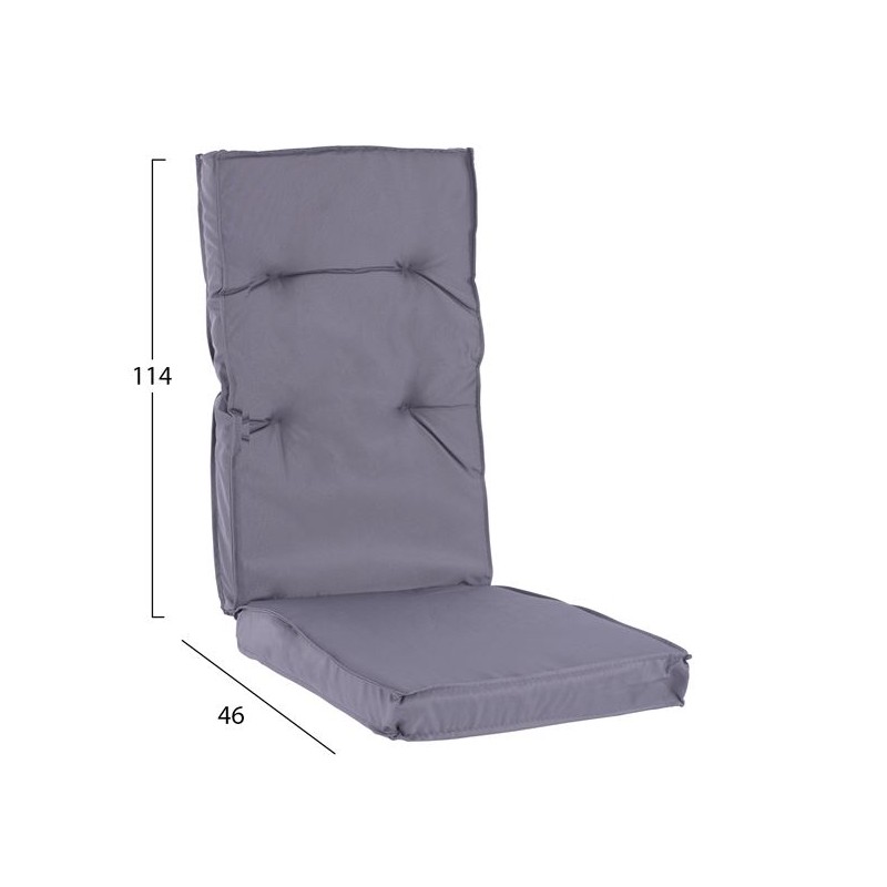 Μαξιλάρι με ψηλή πλάτη και προσκέφαλο εξωτερικου χώρου με επένδυση από αδιάβροχο υφασμα σε χρώμα γκρι 48,5cm*119cm*5cm