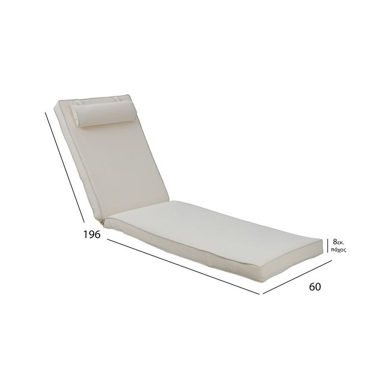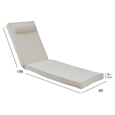Μαξιλάρι για ξύλινη ξαπλώστρα 8εκ από αδιάβροχο υφασμα 200gr polyester σε χρώμα μπεζ της άμμου με βολάν.