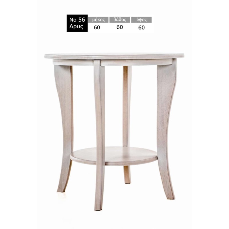 Βοηθητικό στρόγγυλο τραπεζάκι σαλονιού σε λευκό αντικέ χρώμα από ξύλο οξιάς διαστάσεων Φ60x60Υεκ.