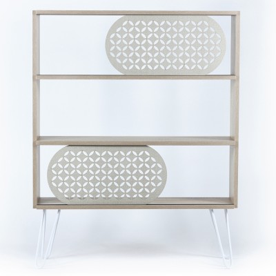 Τραπέζι σαλονιού Οριωνας με δυο επίπεδα και τρία χρώματα λευκό γκρι φυσικό με συρτάρι