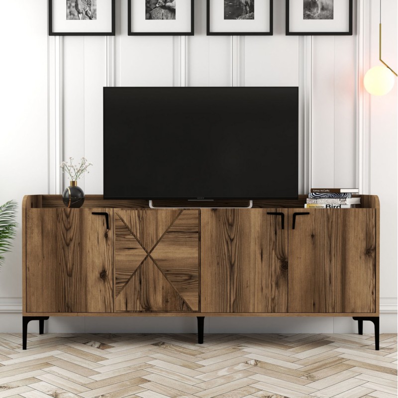 Ο μπουφές ΗΜ9433.04 είναι ένα επιβλητικό έπιπλο όπου κι αν τον τοποθετήσετε. Έχει ψηλά μαύρα μεταλλικά πόδια και δύο μεγάλα ντουλάπια που ανοίγουν με διπλές πόρτες με μεταλλικά μαύρα χερούλια. Το μήκος του εξασφαλίζει ότι η επιφάνεια του είναι μεγάλη και αρκετή για τοποθέτηση πολλών αντικειμένων. Το χρώμα όλης της κατασκευής είναι καρυδί. Ο μπουφές αυτός θα σας ενθουσιάσει! Τι είναι όμως ο μπουφές; Ο μπουφές είναι ένα άκρως πρακτικό έπιπλο, αφού στους αποθηκευτικούς του χώρους μπορούμε να βάλουμε από σερβίτσια πιάτων και ποτήρια, μέχρι κεριά και διάφορα άλλα χρηστικά αντικείμενα που έχουμε στο σπίτι μας, ώστε να είναι τακτοποιημένα και να μη δημιουργούν ακαταστασία στο χώρο.