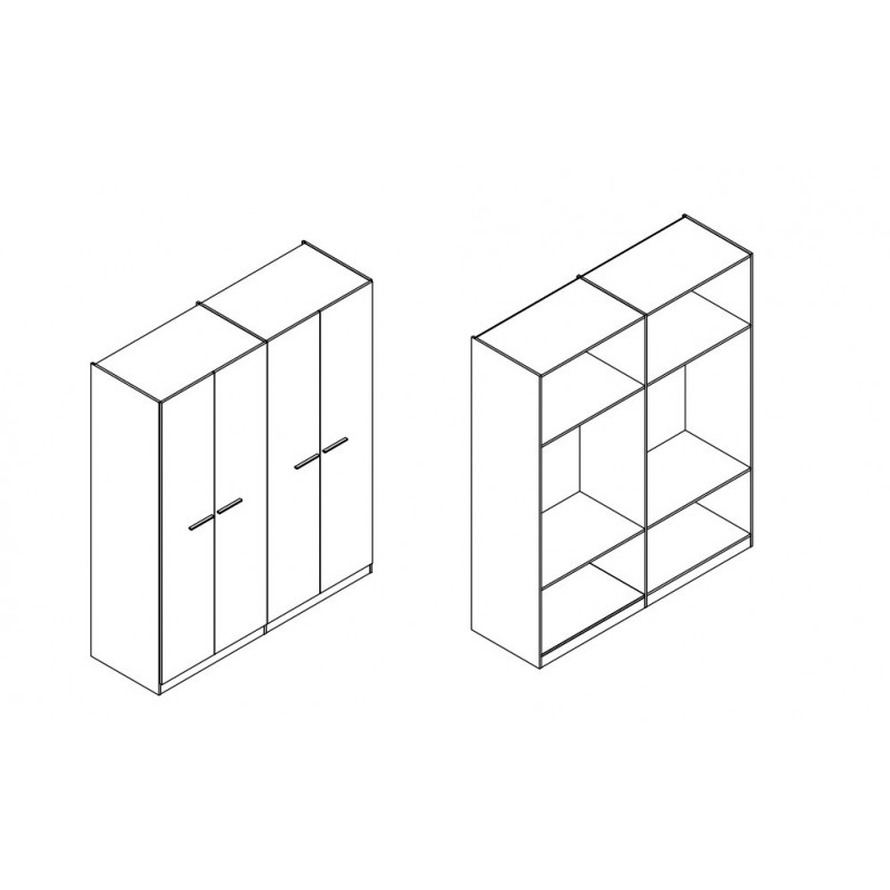 Η τετράφυλλη ντουλάπα που σας προτείνουμε έχει εσωτερικά χώρους για κρεμαστά ρούχα επίσης έχει ράφια (εσωτερικά πατάρια ) για παπλώματα και μαξιλάρια, διαθέτει δυο εσωτερικά συρτάρια για εσώρουχα και κάλτσες .