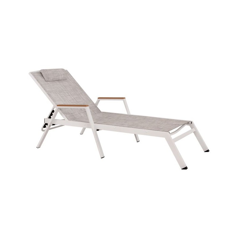 Ξαπλώστρα παραλίας πτυσσόμενη βαρέως τύπου αλουμινίου σιέλ διάτρητο με μαξιλάρι και χειρολαβές μεταφοράς 190x60x30εκ