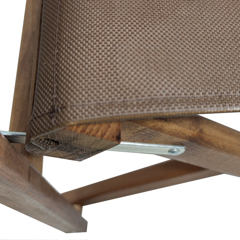 Κατασκευασμένη από ενισχυμένο σκελετό 100% μασίφ ξύλο φουρνιστής οξιάς σε καρυδί απόχρωση με textilene σε καφέ χρώμα.