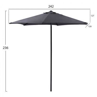 Ομπρέλα κήπου μπαλκονιού στρογγυλή Φ3μ γκρι 180g/㎡ Polyester ανάκληση 8 ακτίνες αεραγωγό διαιρούμενη με μανιβέλα και φραμπαλά SL-UM011