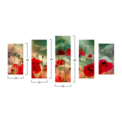ΠΙΝΑΚΑΣ ΠΕΝΤΑΠΤΥΧΟ MDF POPPY FIELD HM7206.03 100X0,3X60 εκ.