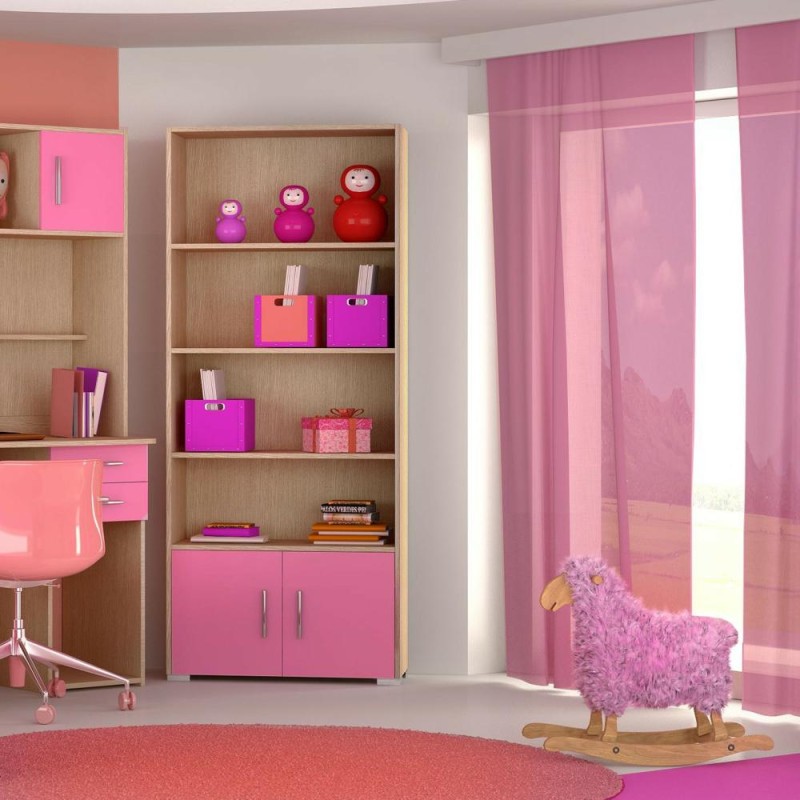 βιβλιοθήκη στήλη από ανάγλυφη μοριοσανιδα φυσικού χρώματος με λευκά πορτάκια και πολλούς χώρους αποθήκευσης
