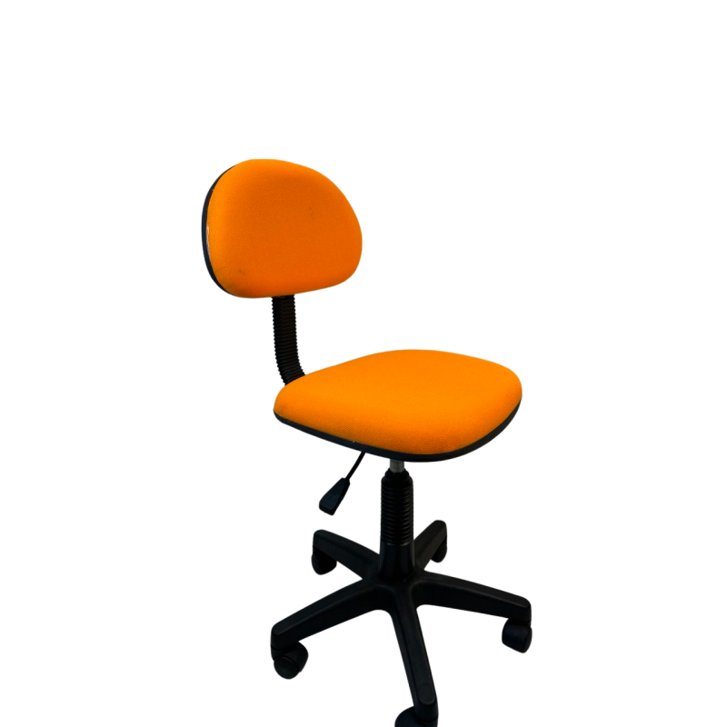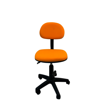 Παιδική καρέκλα γραφείου πορτοκαλί με μαύρο κουμπί με μπράτσα διάτρητο ύφασμα τεχνοδερμα μεταλλική τροχήλατη βάση 70x50x90εκ