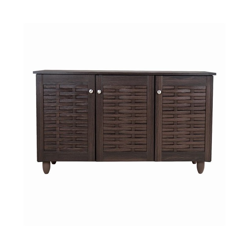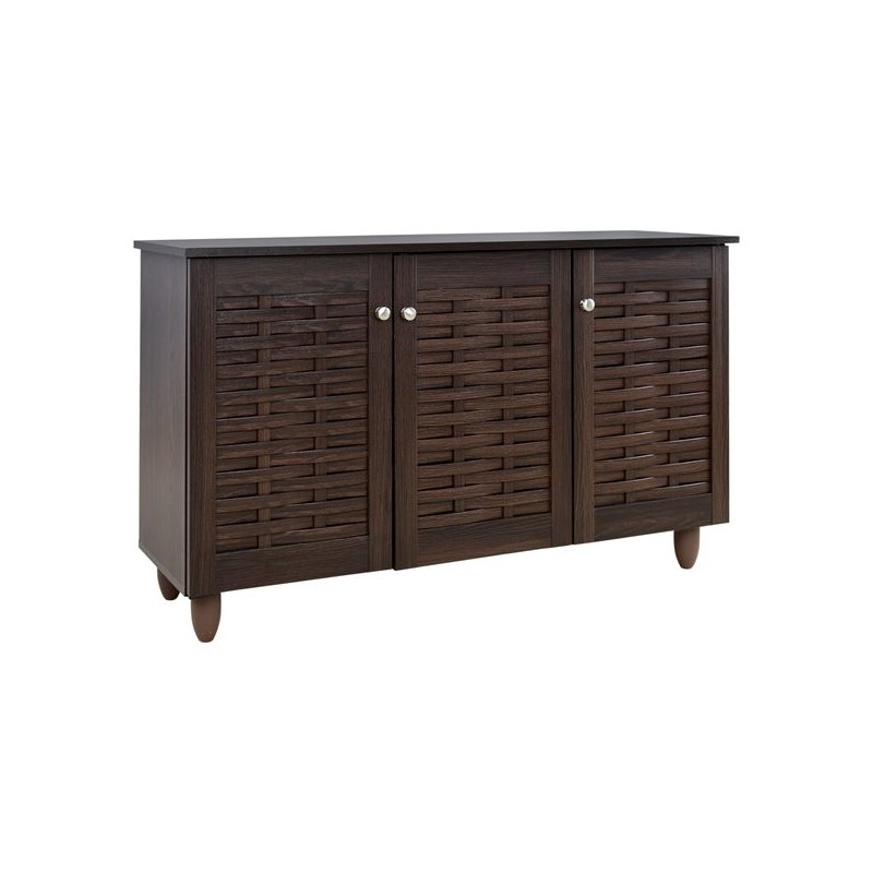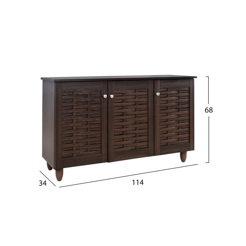 Παπουτσοθήκη σε καρυδί χρώμα με σχέδιο στον νταμπλά από mdf διαστάσεων 73*36*92εκ.