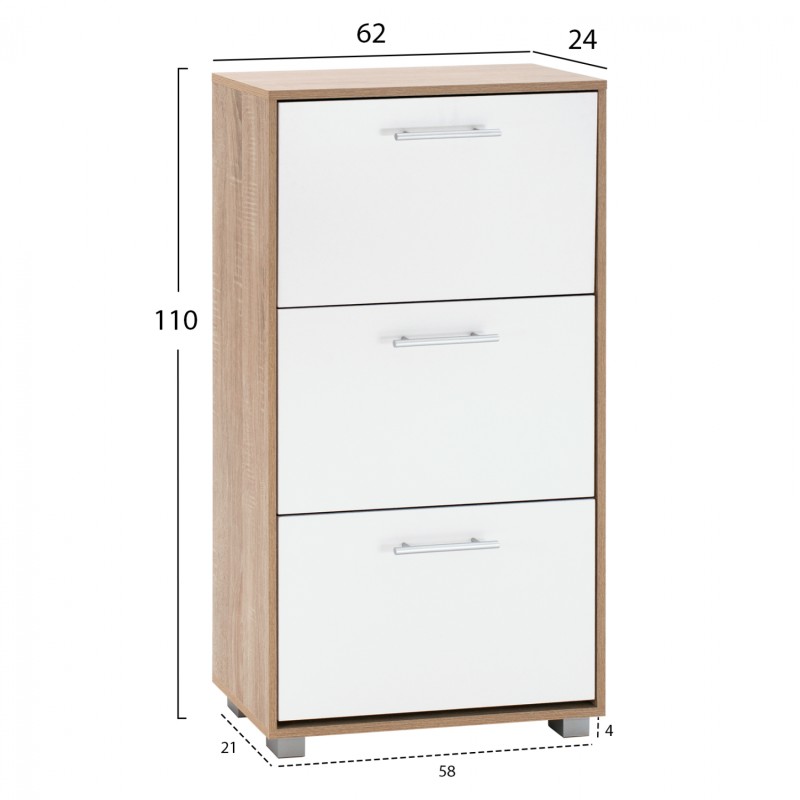 Έχει ένα συρτάρι και το ντουλάπι έχει 4 χώρους για να τοποθετείτε τα παπούτσια σας και οτιδήποτε άλλο επιθυμείτε. Διαθέσιμο σε επιθυμητές διαστάσεις και χρώμα κατόπιν παραγγελίας (με επιπλέον χρέωση).