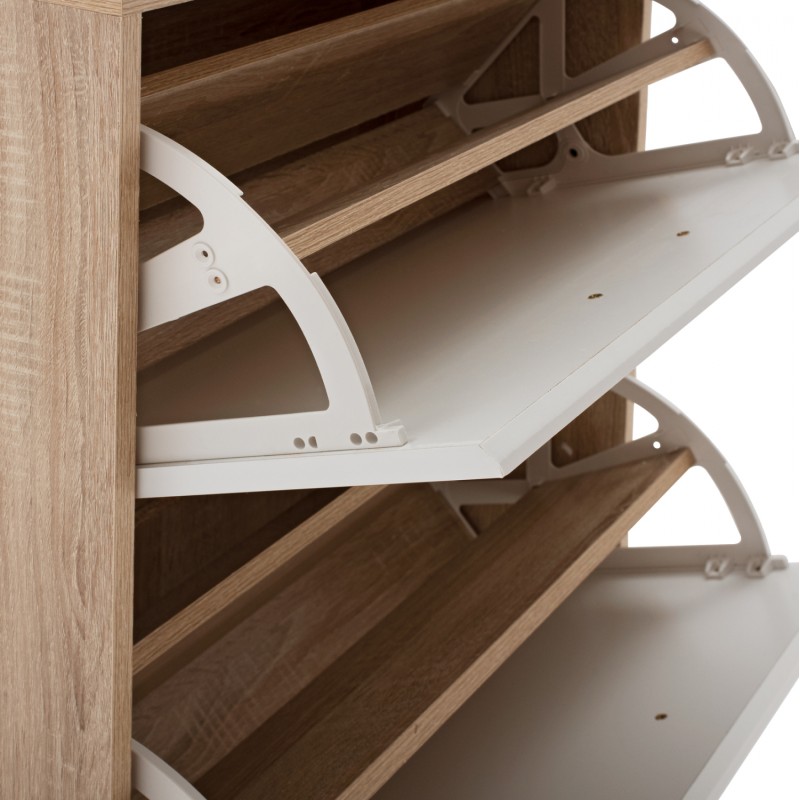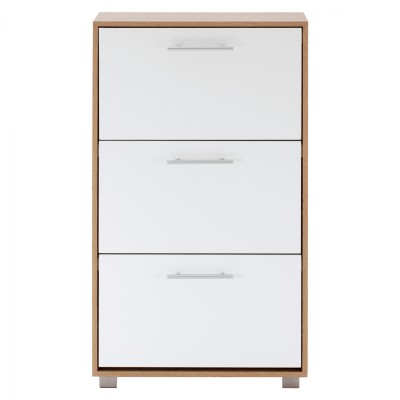 Παπουτσοθήκη σε ανοιχτό καρυδί χρώμα με σχέδιο στον νταμπλά με 2 συρτάρια περιστροφής και ένα συρτάρι από mdf διαστάσεων 60*33*93εκ.