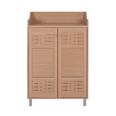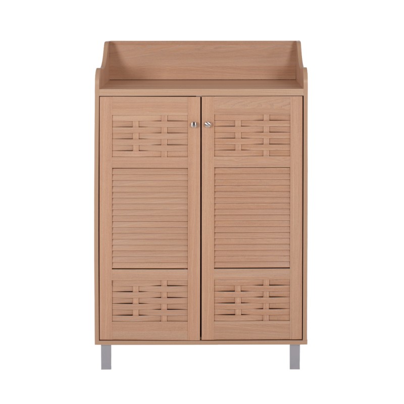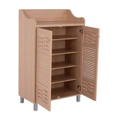 Παπουτσοθήκη σε καρυδί χρώμα με σχέδιο στον νταμπλά με 2 συρτάρια περιστροφής και ένα συρτάρι από mdf διαστάσεων 80*34*93εκ.