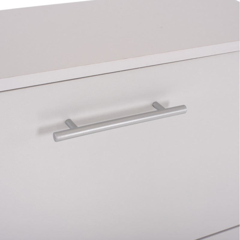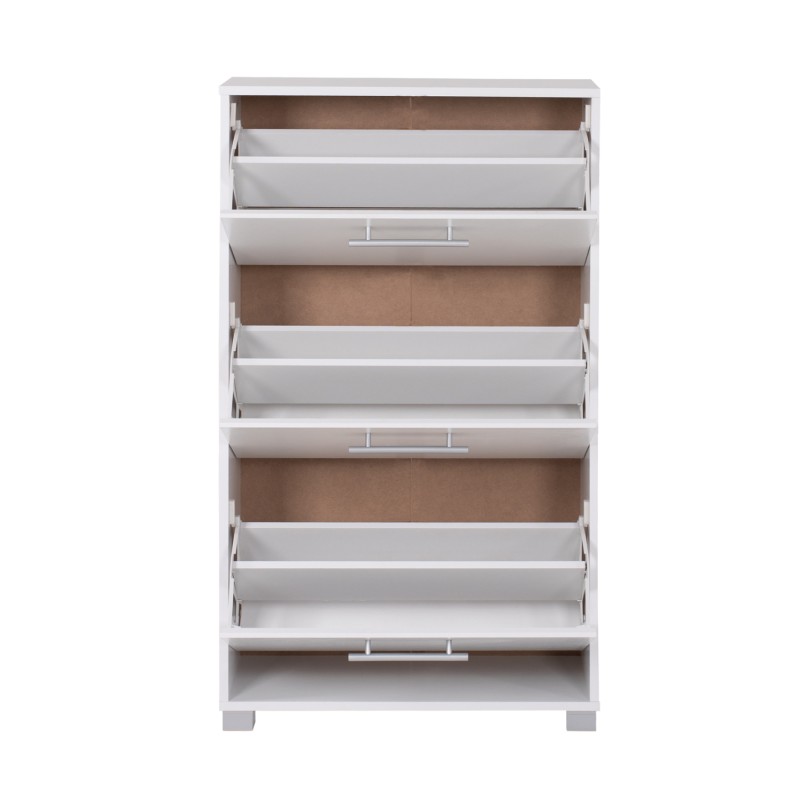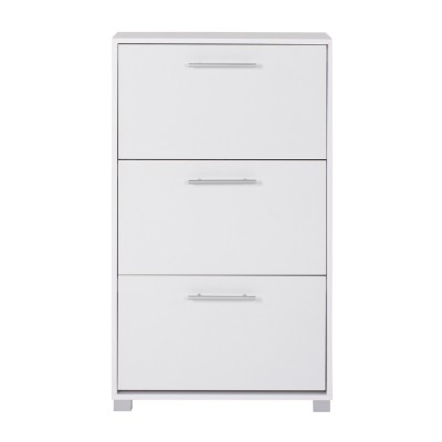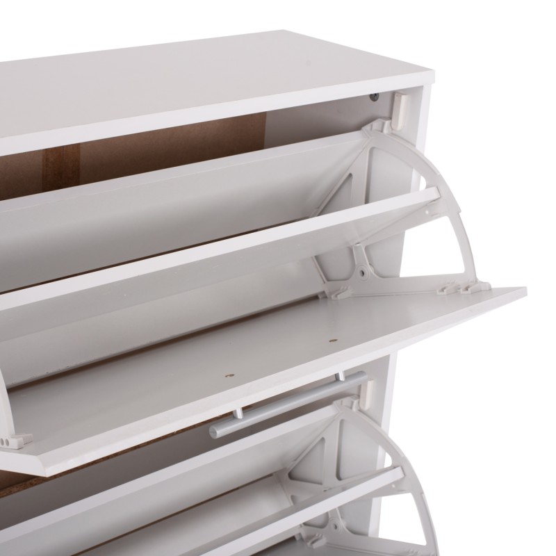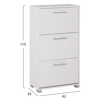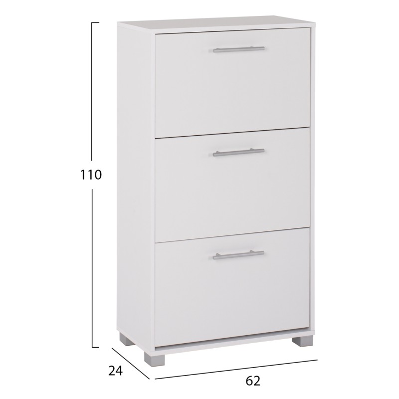 Παπουτσοθήκη σε λευκό χρώμα με σχέδιο στον νταμπλά με 2 συρτάρια περιστροφής και ένα συρτάρι από mdf διαστάσεων 80*34*93εκ.