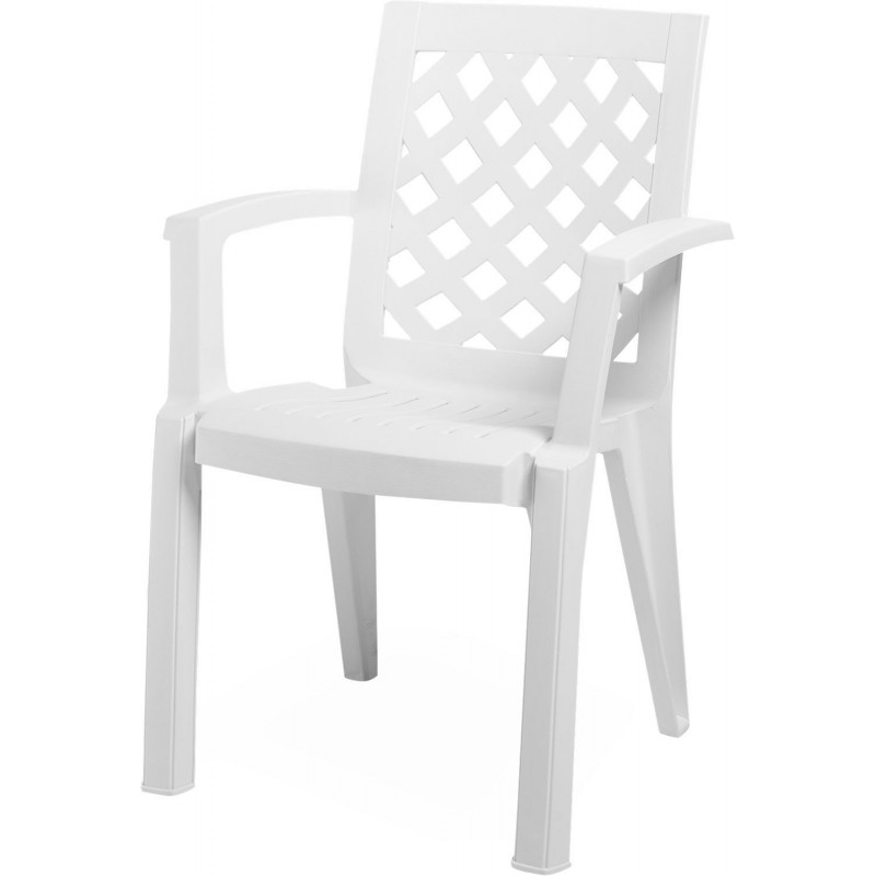Πλαστική πολυθρονα με ψιλή πλάτη και σχέδιο στην πλάτη άσπρη με σχέδιο.