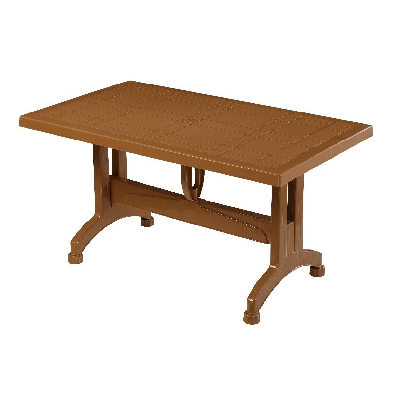 Τραπέζι πλαστικό πολυπροπυλενίου ορθογώνιο σταθερό με ανάγλυφο σχέδιο φυσικού ξύλου διαστάσεων 150cm*90cm χρώματος cappuccino.