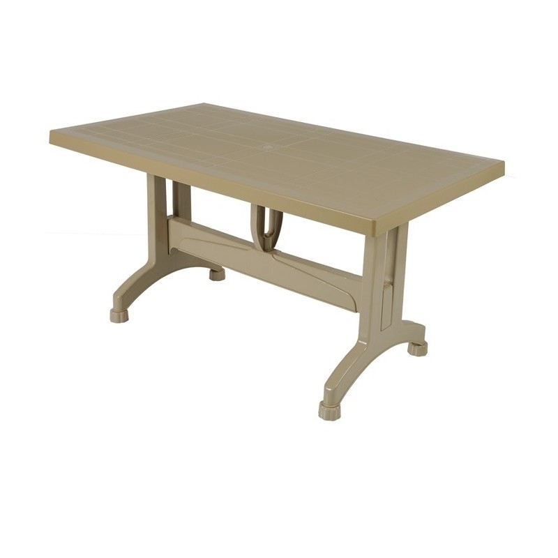 Πλαστικό τραπεζι με κεντρικό δοκό στήριξης για περισσότερη σταθερότητα διαστάσεων 120cm*70cm σε χρώμα cappuccino. Στα πόδια υπάρχουν ρεγουλατοροι για να ρυθμίζετε το ύψος αν το έδαφος ειναι ανώμαλο και επίσης στην επιφάνεια του τραπεζίου υπαρχει υποδοχή για ομπρέλα.