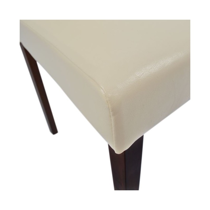 Καρέκλα τραπεζαρίας από ξύλινο καρυδί σκελετό και επένδυση από τεχνόδερμα σε εκρού απόχρωση,