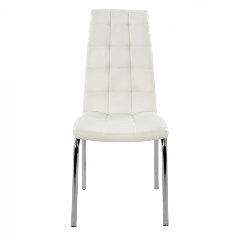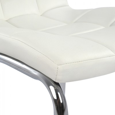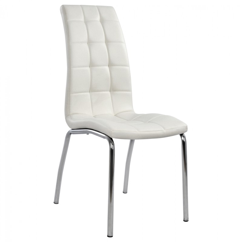 Καρέκλα κουζίνας από σκελετό χρωμίου και επένδυση από δερματίνη σε λευκό χρώμα.