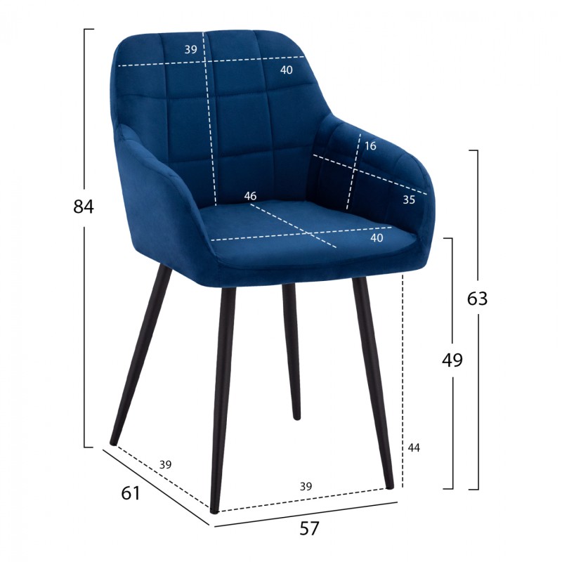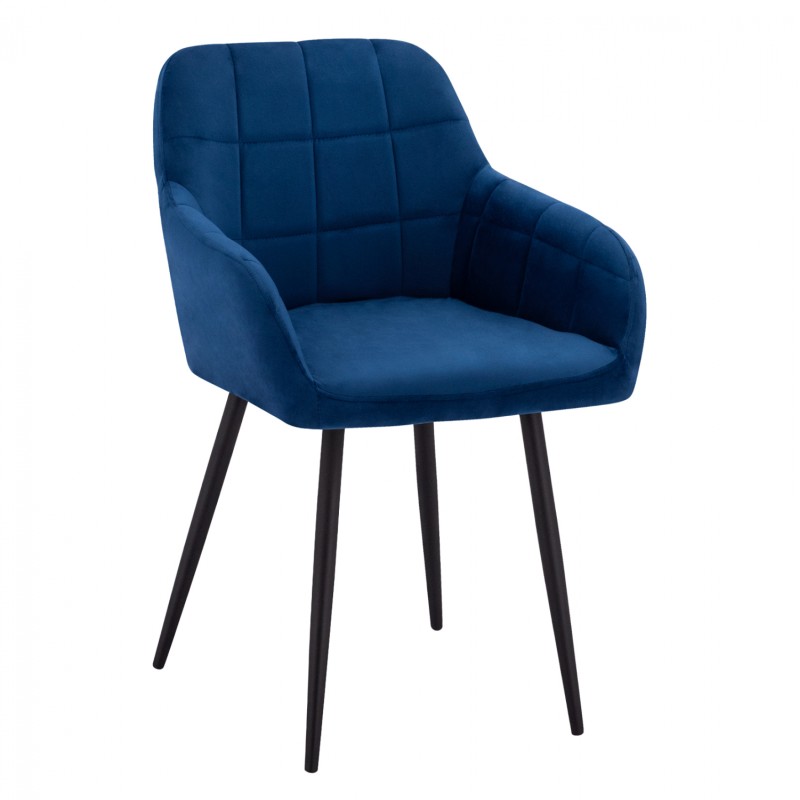 Πολυθρόνα Chloe επενδυμένη με ύφασμα βελούδο σε μπλε απόχρωση και μεταλλικά πόδια σε μαύρη απόχρωση.