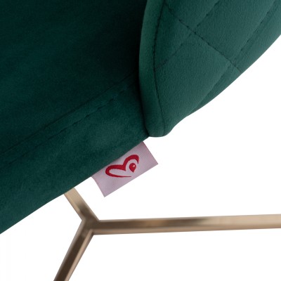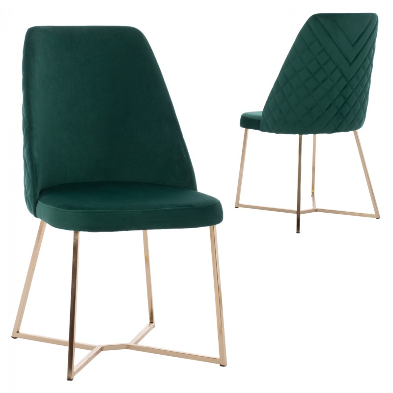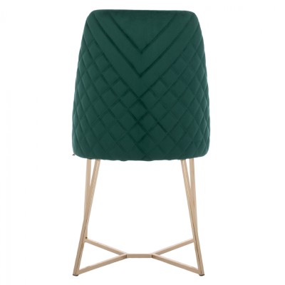 Καρέκλα ROSALIND σε ευχάριστο Κυπαρισσί χρώμα με μεταλλικά πόδια σε χρυσή απόχρωση. Τα 4 μεταλλικά πόδια συνδέονται μεταξύ τους με μια χιαστί διάταξη στο κάτω μέρος.