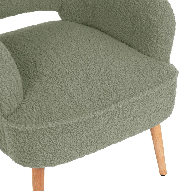 Ολόκληρη η επένδυση της μπερζέρας έχει γίνει με εξαιρετικής ποιότητας ΜΠΟΥΚΛΕ ύφασμα. Μπουκλέ λέγεται οποιοδήποτε ύφασμα που έχει κόμπο-μπούκλα στην ύφανσή του. Κατασκευάζεται από σχεδόν όλες τις πρώτες ύλες (αν και συνήθως είναι συνθετικό) με ειδικές κλωστές με κόμπους ή πολύ στριμμένα νήματα, έτσι ώστε να έχει σγουρή επιφάνεια. Δεν τσαλακώνει και μπορεί να είναι μονόχρωμο, μελανζέ ,καρώ ή τουιντ.