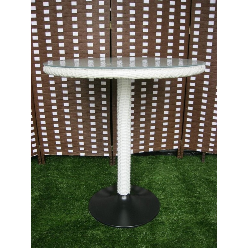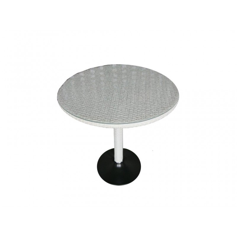 Τραπέζι ρατάν (πλεκτό) αλουμινίου σε λευκό χρώμα επιφάνεια και μεταλλική μαύρη βάση διαμέτρου 80εκ*73εκ.