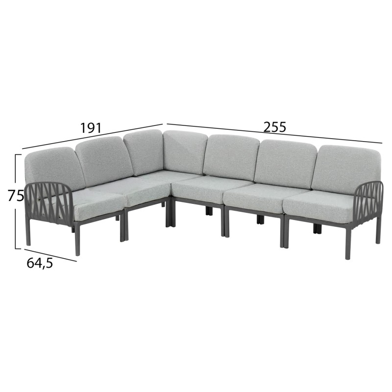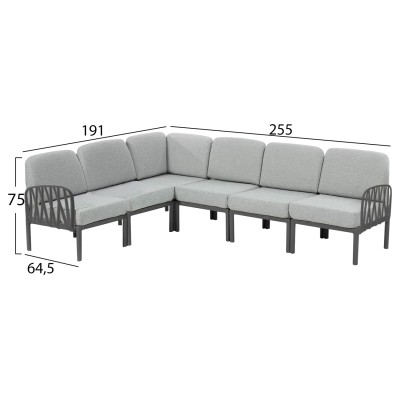 Το HM5931.10 αποτελείται από έναν καναπέ-γωνία πολυπροπυλενίου και ένα τετράγωνο τραπεζάκι πολυπροπυλενίου με επιφάνεια από γυαλί ασφαλείας, για εξωτερικούς χώρους. Ο καναπές διαθέτει αναπαυτικά μαξιλάρια τόσο στο κάθισμα, όσο και στην πλάτη, τα οποία έχουν φερμουάρ για εύκολη αφαίρεση των καλυμμάτων. Το χρώμα του σκελετού είναι ΑΝΘΡΑΚΙ, ενώ το χρώμα στα μαξιλάρια είναι ΑΝΟΙΧΤΟ ΓΚΡΙ.