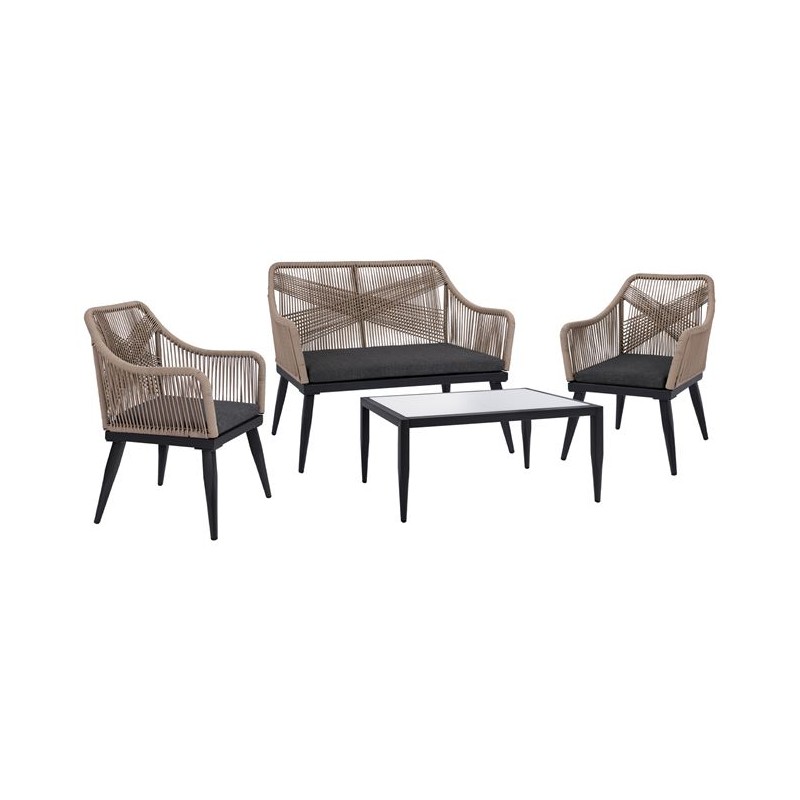 ΣΕΤ ΣΑΛΟΝΙΟΥ 4ΤΜΧ ΜΕ ΔΙΘΕΣΙΟ ΑΛΟΥΜΙΝΙΟΥ ΣΚΕΛΕΤΟ ΚΑΙ WICKER ARENA ΚΑΦΕ ΜΕ ΤΡΑΠΕΖΙ ΦΑΓΗΤΟΥ