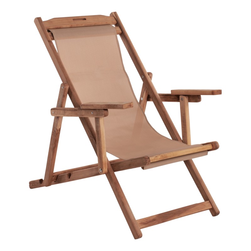 Η ξύλινη σεζλόνγκ παραλίας με μπράτσα ΛΗΜΝΟΣ σε ΚΑΡΥΔΙ χρώμα εμποτισμού είναι μια μοντέρνα και πολυτελής πρόταση για την παραλία. Η ξύλινη κατασκευή της την κάνει απίστευτα ανθεκτική και στιβαρή και το ΜΟΚΑ textilene πανί ταιριάζει όμορφα με τον ΚΑΡΥΔΙ σκελετό. Η σκαλιέρα έχει 3 θέσεις ανάκλισης προσφέροντας την πολυπόθητη άνεση που αναζητάτε στην παραλία.
