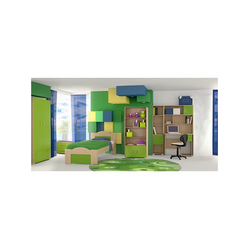 Σετ παιδικό δωμάτιο "Κύμα" δρυς-λαχανί 110x190